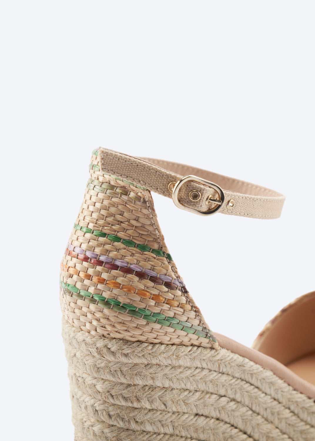High wedge: 2.75" natural jute wedge seated on a 0.75" platform.